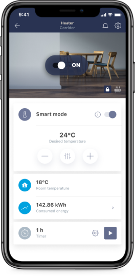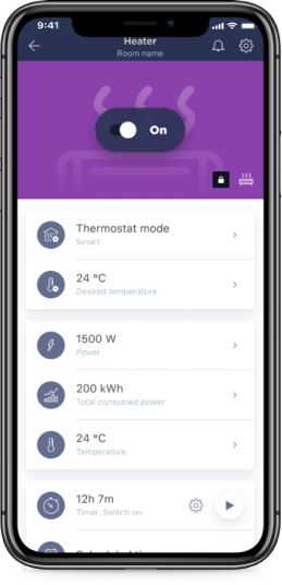 1. Загрузите приложение Perenio Smart (iOS/Android) на свой смартфон 2. Нажмите кнопку на боковой части обогревателя для подключения по Wi-Fi 3. Добавьте его в приложение