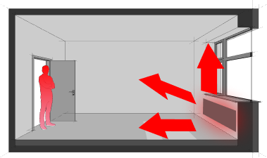 Нагрев и конвекция центрального отопления Важный недостаток батарей центрального отопления и обогревателей схожей схемы – в неравномерном распределении тепловых потоков